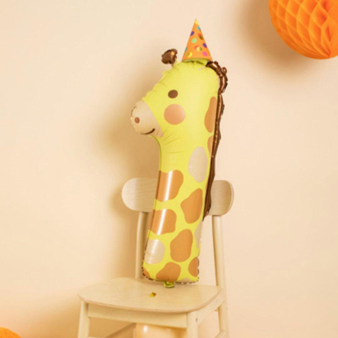 Giraffe Foil Balloon Number 1 - Safari Animal 1st Birthday Balloon Decoration - Animal Party Number Balloon - Helium Or Air Balloon - Jolie Fete