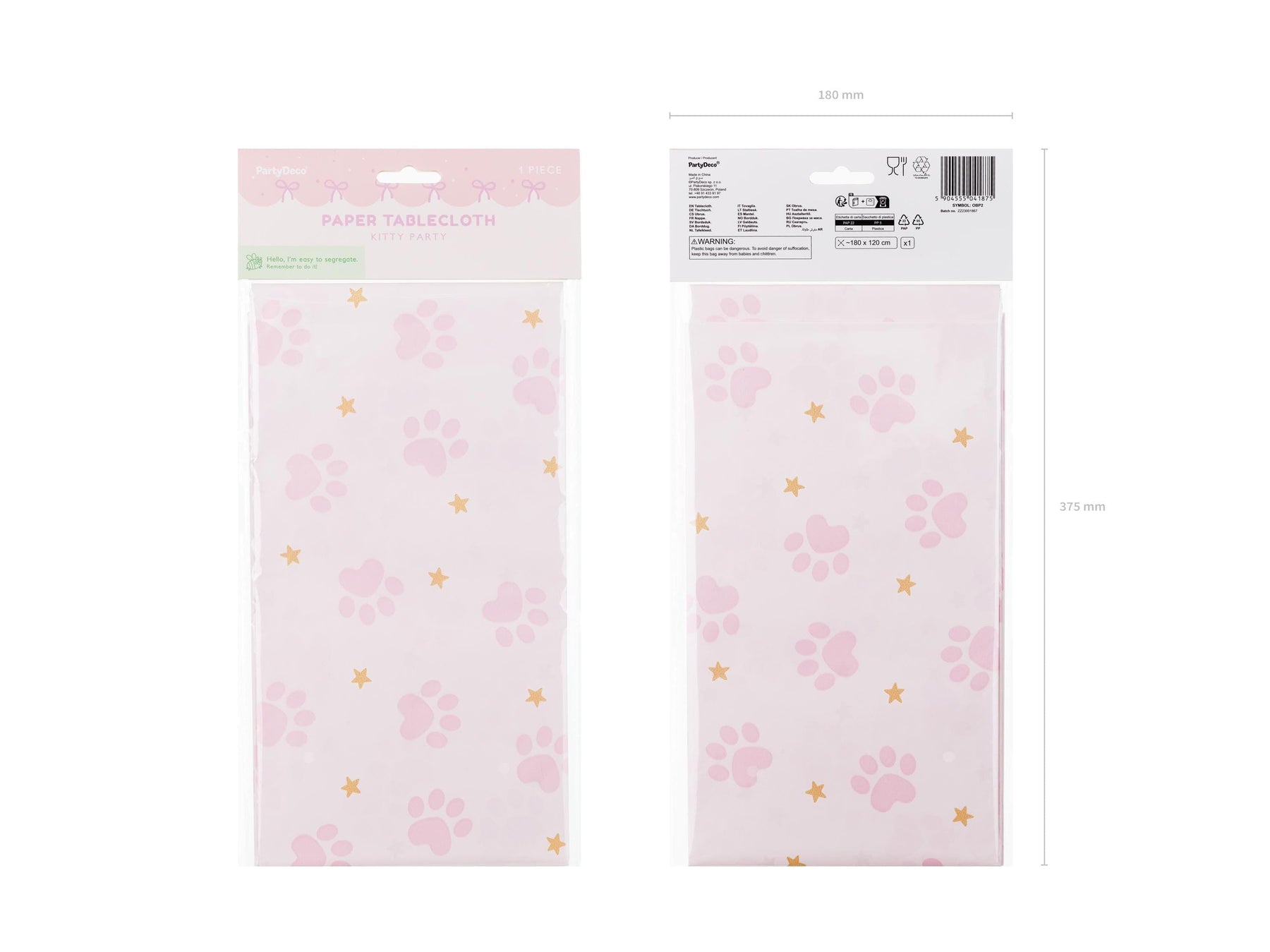 Cat Paw Print Paper Tablecloth - Pink and White Cat Paper Party Table Cover - Meow Party - Paw Print Birthday Party Tableware - Jolie Fete UK