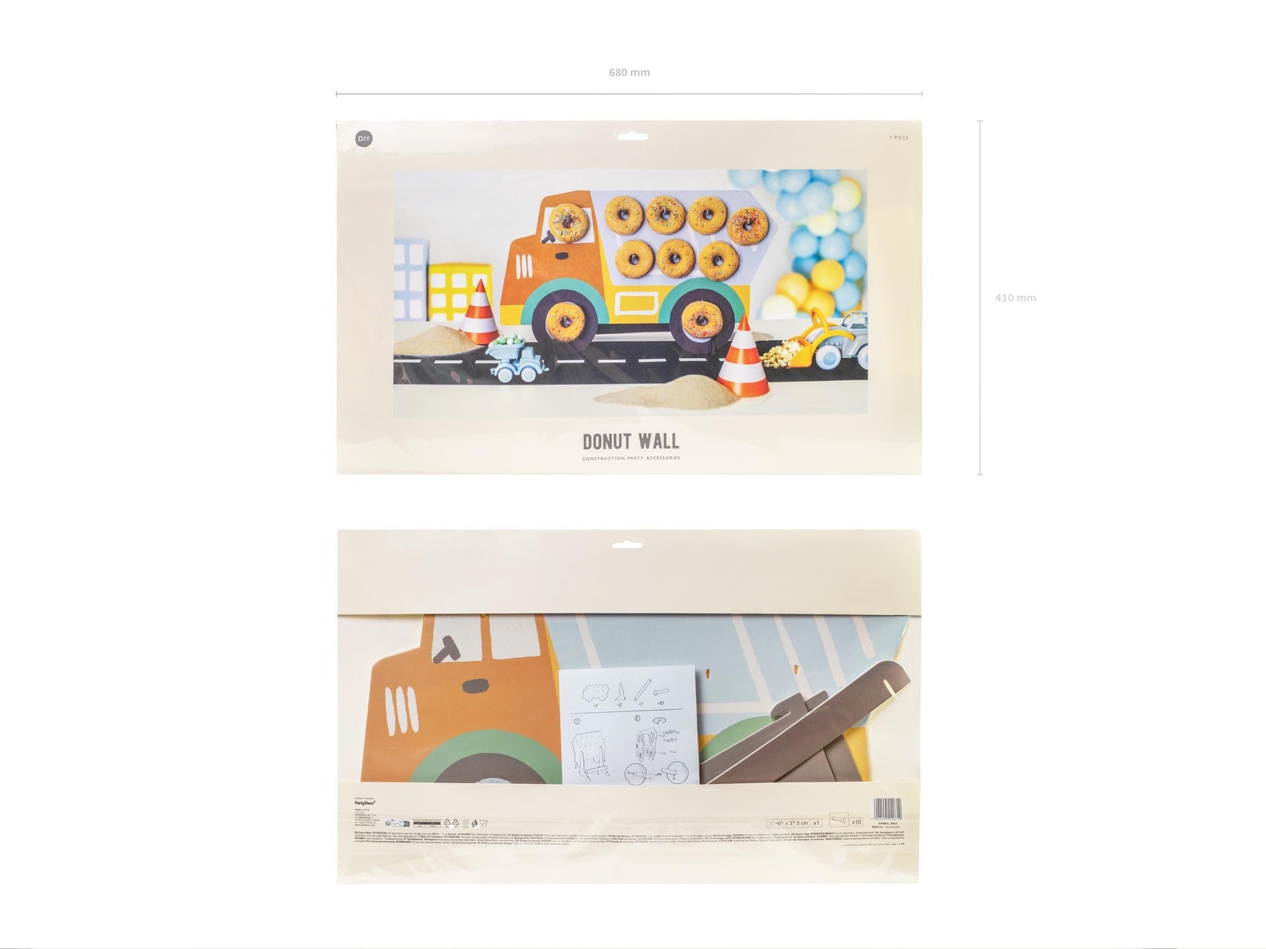 Shaped like a giant yellow cement mixer truck, this sturdy cardstock display holds 8 delicious donuts, making it both a practical treat holder and a fantastic table centrepiece. It’s perfect for a "Work Zone" snack station or a little builder's birthday.