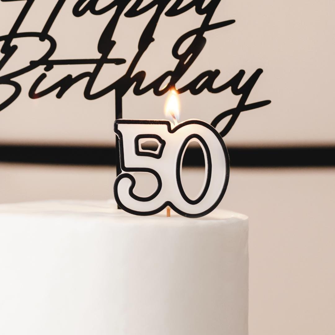 50th Birthday Cake Candle – White & Black Milestone Number Candle