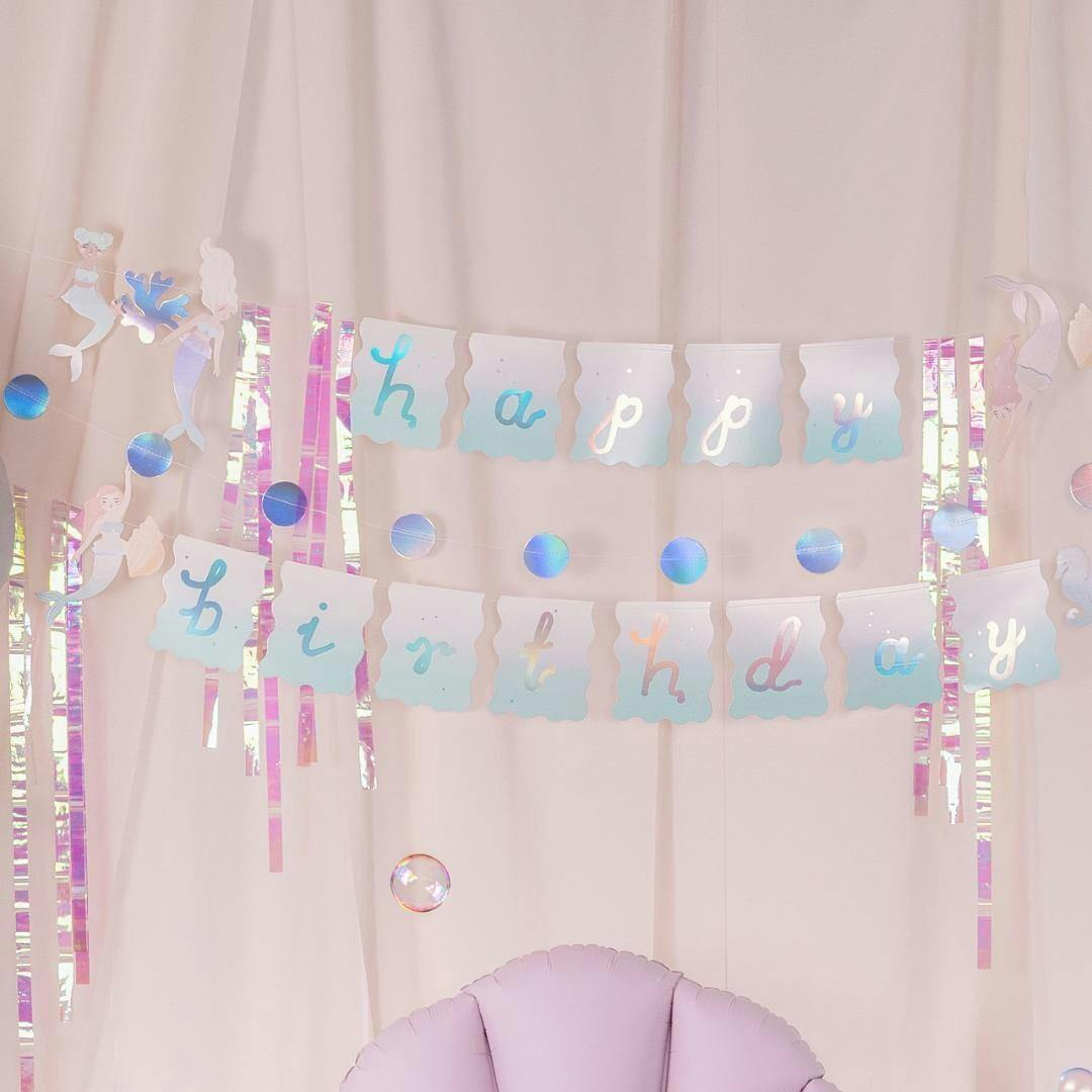 Mermaid Happy Birthday Banner - Iridescent Party Bunting Backdrop - Iridescent Mermaid Party Supplies - Dive Into Five - Under the sea - Jolie Fete UK