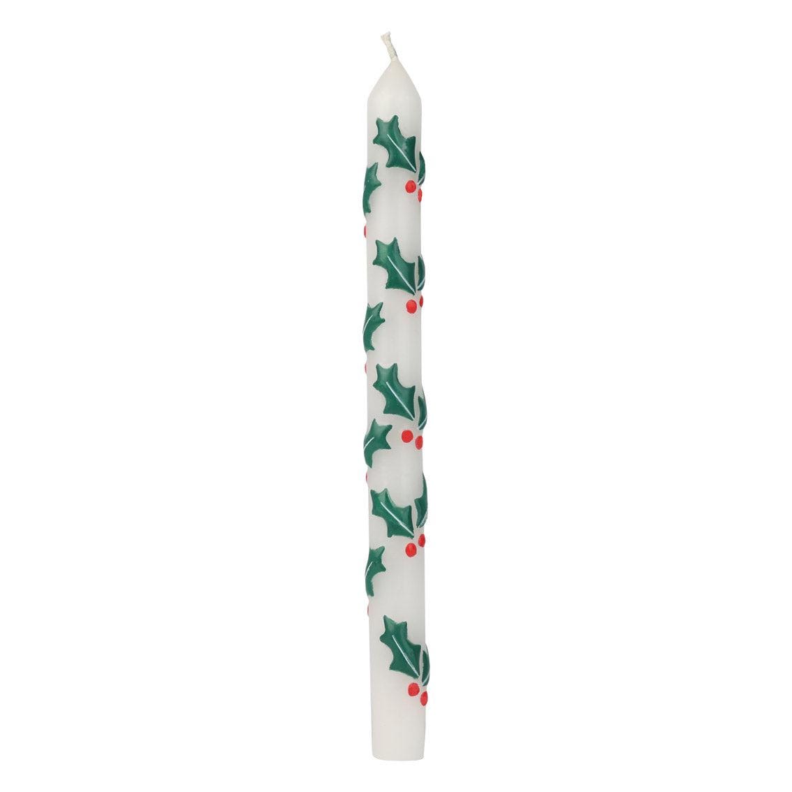 Add a touch of classic Christmas charm to your table with these beautiful holly dinner candles. Each pack contains two elegant white candles, hand-decorated with a raised holly leaf and berry design. The vibrant green and red detailing will bring a pop of festive colour to your home.