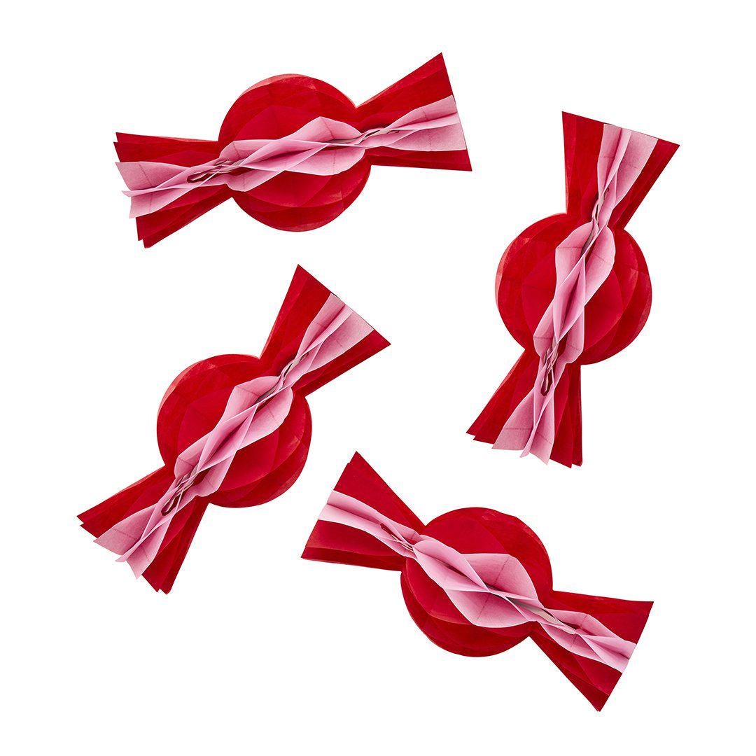 Pink & Red Paper Honeycomb Christmas Candy Decorations - Pack Of 4