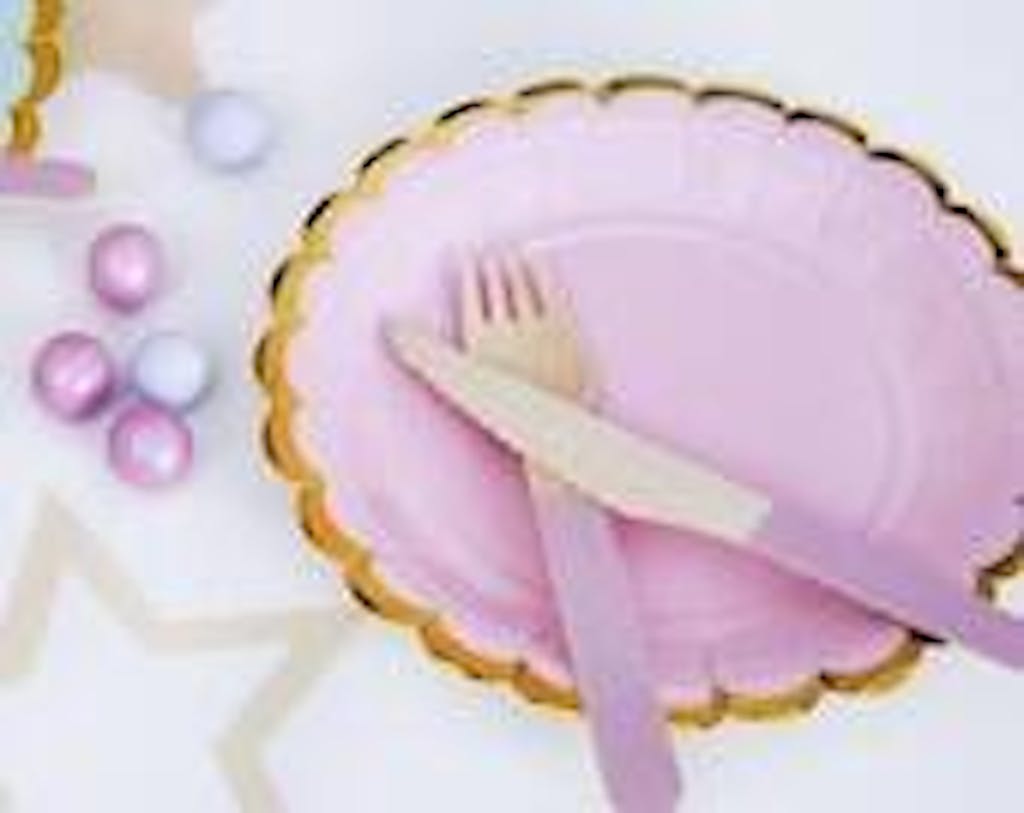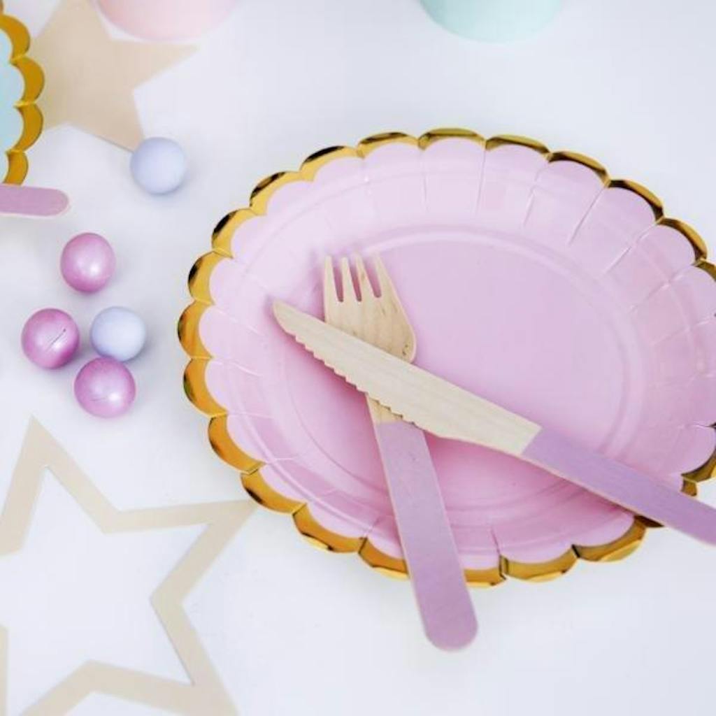 With their plain light pink colour and subtle gold scalloped edge, these pretty little paper plates are perfect for all sorts of occasion from children's birthdays to baby showers.