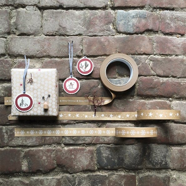 Christmas Tape - Brown Tape With White Snowflakes - Christmas Crafts - Christmas Wrapping - 50m Roll - East Of India