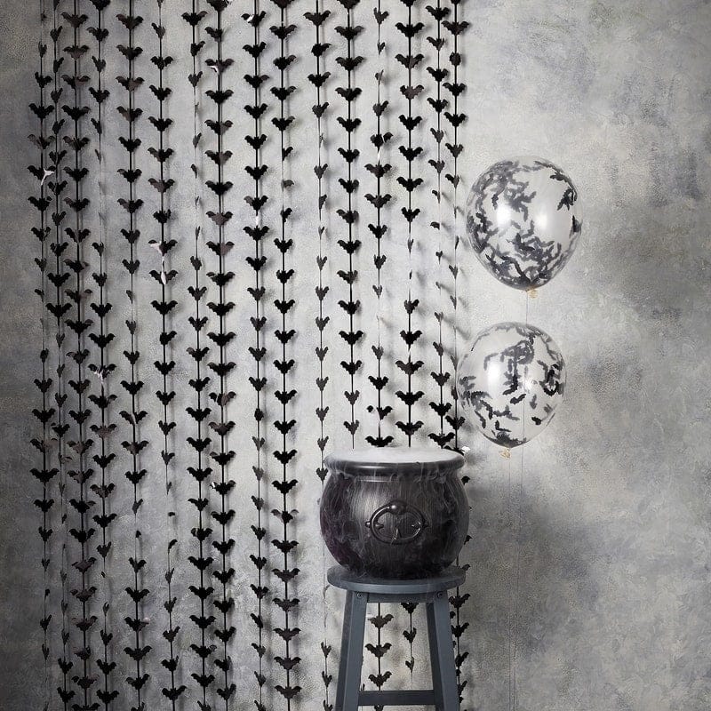 Try not to get too freaked out by this creepy Black Bat Shaped Fringe Curtain, the perfect decoration for a Spooktacular Halloween Party.