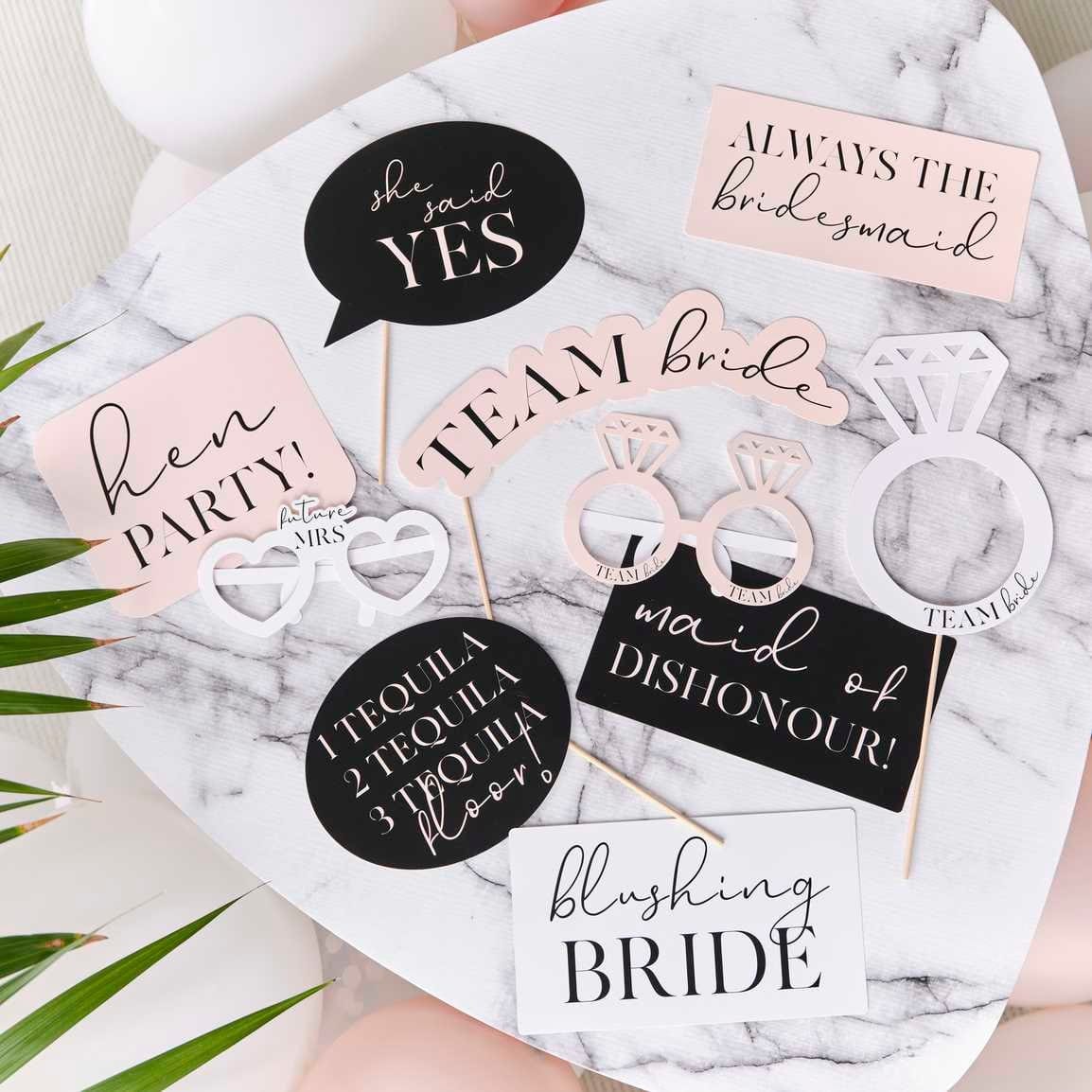 Pink, Black and White Hen Party Photo Booth Props - Pack of 10