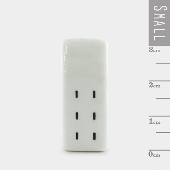 The house is white in colour and made from porcelain with a grey/beige coloured cardboard presentation box.