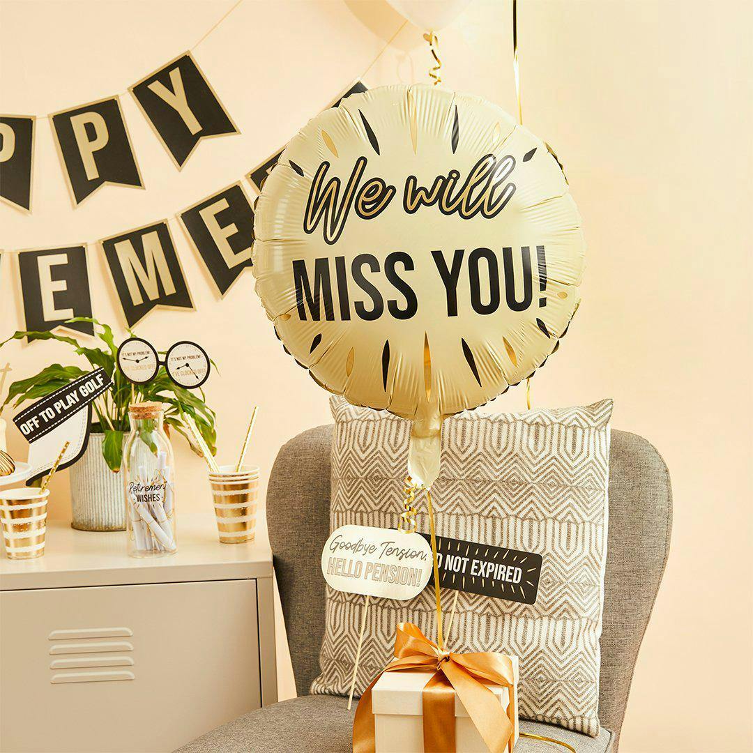 Show your appreciation with our elegant cream and black "We Will Miss You!" balloon. Perfect for retirements, farewells, graduations, or any occasion where you want to express your well wishes.